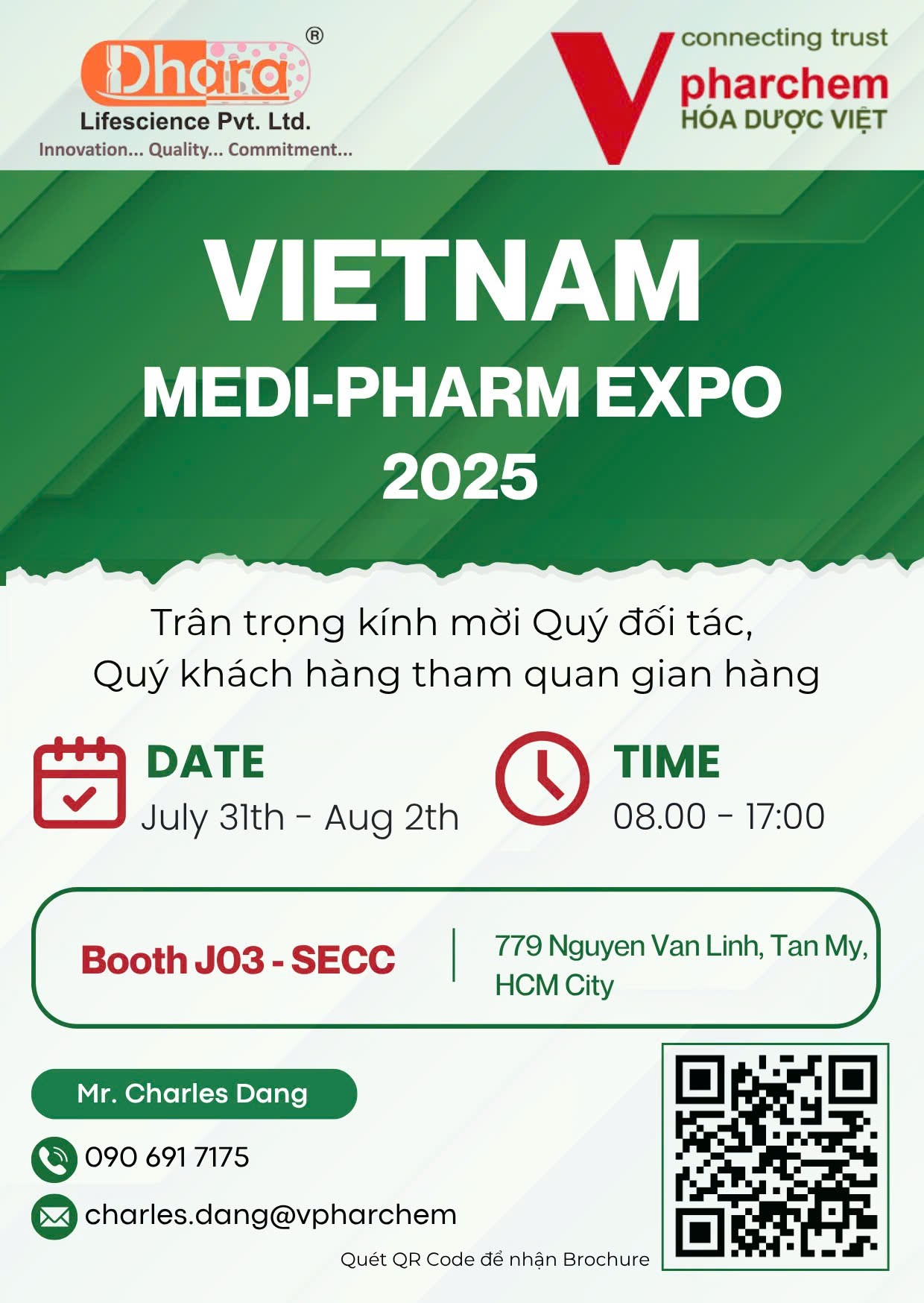 Chúng tôi vui mừng thông báo rằng Nhà sản xuất Dhara – đơn vị uy tín chuyên cung cấp nguyên liệu và chất chuẩn cho ngành dược phẩm, thực phẩm và mỹ phẩm – sẽ chính thức tham gia Vietnam Medipharm Expo 2025, diễn ra tại Trung tâm Hội chợ & Triển lãm Sài Gòn (SECC).